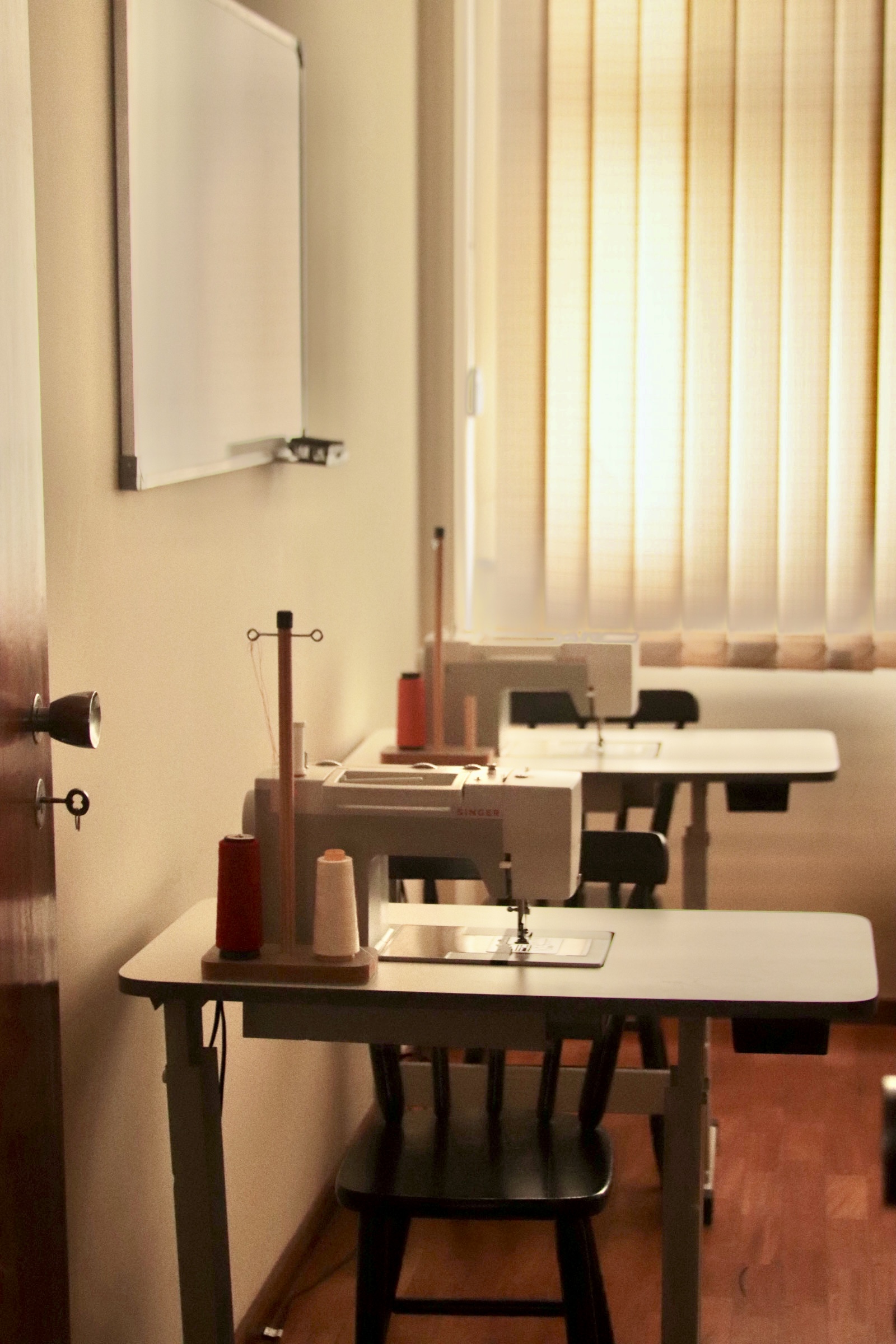 Ambiente equipado para o aprendizado técnico e prático da costura. Contamos com três máquinas domésticas, uma máquina industrial reta e uma interloque, garantindo que cada aluno possa compreender e praticar diferentes tipos de costura e acabamentos. O espaço é organizado para que todos os participantes tenham uma experiência individualizada, com atenção e acompanhamento próximos durante as atividades.